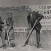 Peninsula Center Library groundbreaking. Pictured from left to right, William C. Emerson, District Librarian, Ruby Hale Field and Edward Chaffee, President of the Library Board of Trustees. 1966. (Palos Verdes Library District, Local History Center Photo Collection) |